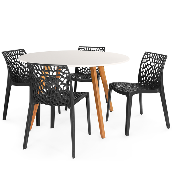Conjunto Mesa de Jantar Redonda Laura 120cm Branca com 4 Cadeiras Gruvyer Preto