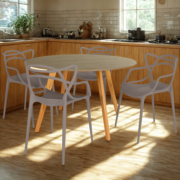 Conjunto Mesa de Jantar Redonda Laura 120cm Natural com 4 Cadeiras Allegra Fendi
