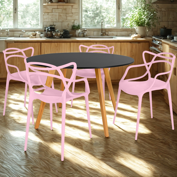Conjunto Mesa de Jantar Redonda Laura 120cm Preta com 4 Cadeiras Allegra Rosa