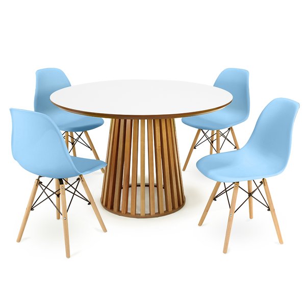 Conjunto Mesa de Jantar Redonda Luana Amadeirada Branca com 4 Cadeiras Eames Eiffel