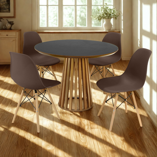 Conjunto Mesa de Jantar Redonda Luana Amadeirada Preta 100cm com 4 Cadeiras Eames Eiffel Marrom