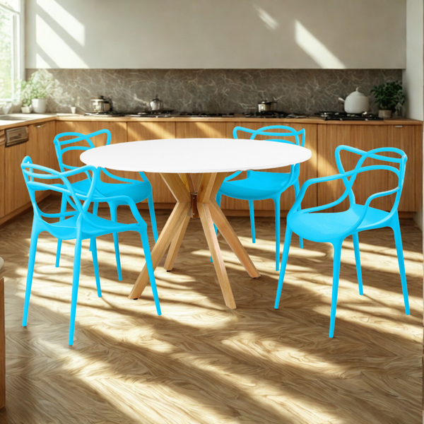 Transforme sua sala de jantar com o Conjunto Mesa de Jantar Redonda Marci com 4 Cadeiras Allegra. Este conjunto combina design moderno, conforto e materiais de alta qualidade para oferecer funcionalidade e estilo a diversos ambientes — de salas de jantar e cozinhas a restaurantes e espaços comerciais sofisticados.