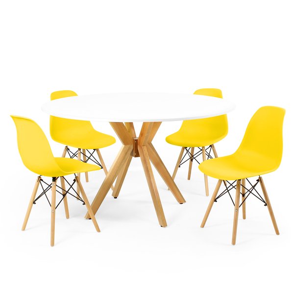 Conjunto de Mesa Marci com Cadeiras Charles Eames Eiffel Wood: Modernidade e Conforto para sua Sala de Jantar