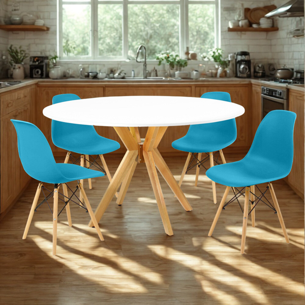 Conjunto Mesa de Jantar Redonda Marci Branca 120cm com 4 Cadeiras Eames Eiffel Turquesa