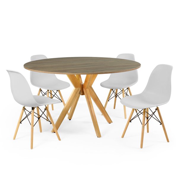 Conjunto Mesa de Jantar Redonda Marci Natural 120cm com 4 Cadeiras Eames Eiffel