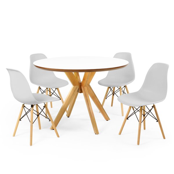Conjunto Mesa de Jantar Redonda Marci Premium Branca 100cm com 4 Cadeiras Eames Eiffel