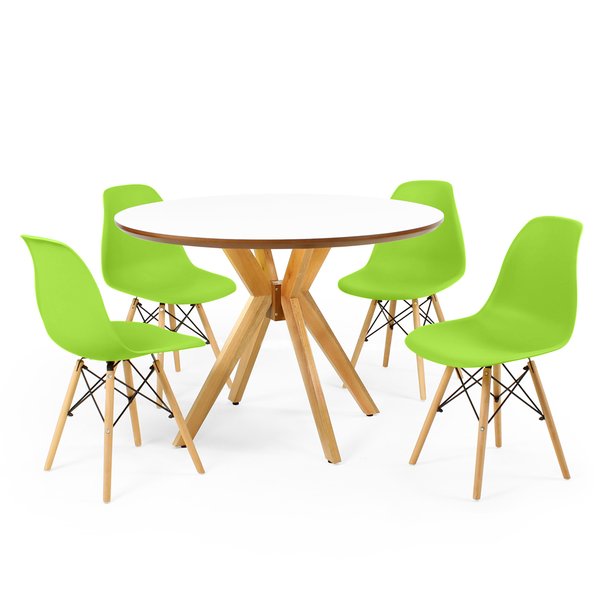 Conjunto Mesa de Jantar Redonda Marci Premium Branca 100cm com 4 Cadeiras Eames Eiffel Verde