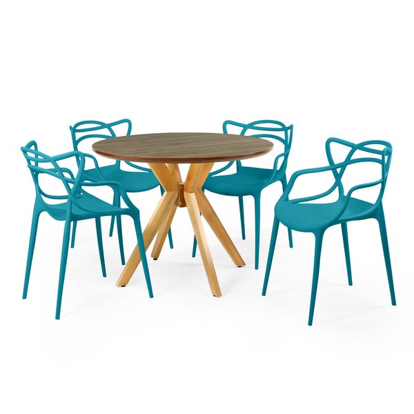Conjunto Mesa de Jantar Redonda Marci Premium com 4 Cadeiras Allegra