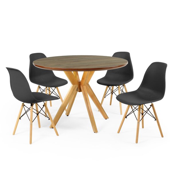 Conjunto Mesa de Jantar Redonda Marci Premium Natural 100cm com 4 Cadeiras Eames Eiffel Preto