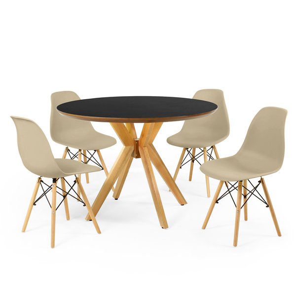 Conjunto Mesa de Jantar Redonda Marci Premium Preta 100cm com 4 Cadeiras Eames Eiffel Nude