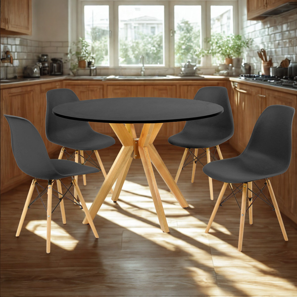 O Conjunto Mesa de Jantar Redonda Marci Preta com 4 Cadeiras Eames Eiffel é a escolha ideal para quem busca aliar design moderno, qualidade e funcionalidade em um único móvel. Com um visual sofisticado e elegante, este conjunto transforma qualquer ambiente — seja a sala de jantar, cozinha, ou até mesmo espaços comerciais como restaurantes e hotéis.