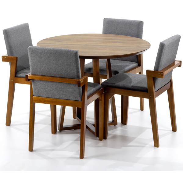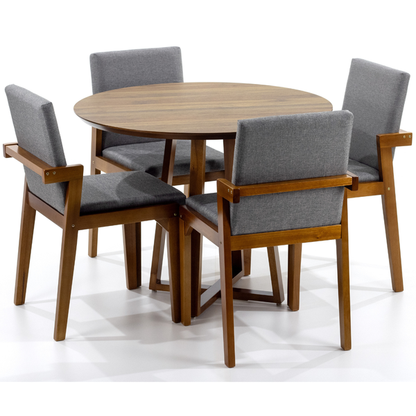 Conjunto Mesa de Jantar Redonda Natural Lara Premium 100cm com 4 Cadeiras Estofadas Isabela