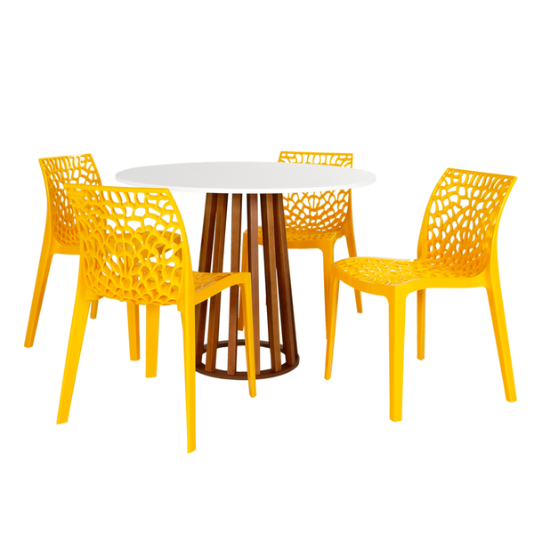 Conjunto Mesa de Jantar Redonda Talia Amadeirada Branca 100cm com 4 Cadeiras Gruvyer