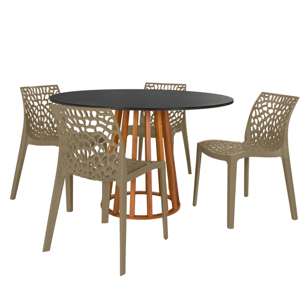 Conjunto Mesa de Jantar Redonda Talia Amadeirada Preta 120cm com 4 Cadeiras Gruvyer
