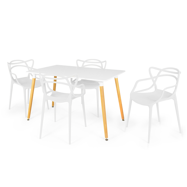 Conjunto Mesa de Jantar Retangular Eiffel Branca 120x80cm com 4 Cadeiras Allegra Branco