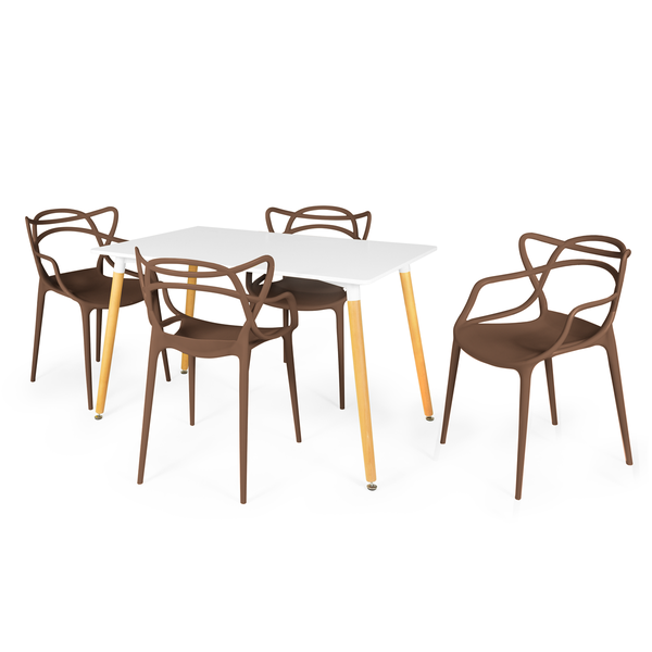 Conjunto Mesa de Jantar Retangular Eiffel Branca 120x80cm com 4 Cadeiras Allegra