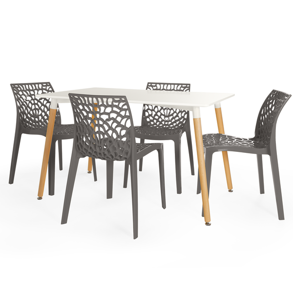As cadeiras Gruvyer foram projetadas para proporcionar o máximo conforto com seu assento aconchegante! Com um design vazado e moderno, as cadeiras Gruvyer complementam perfeitamente a mesa Eiffel, criando um visual coeso e sofisticado. Fabricadas em polipropileno de alta qualidade, as cadeiras são leves, fáceis de limpar e extremamente resistentes, ideais para uso diário.
