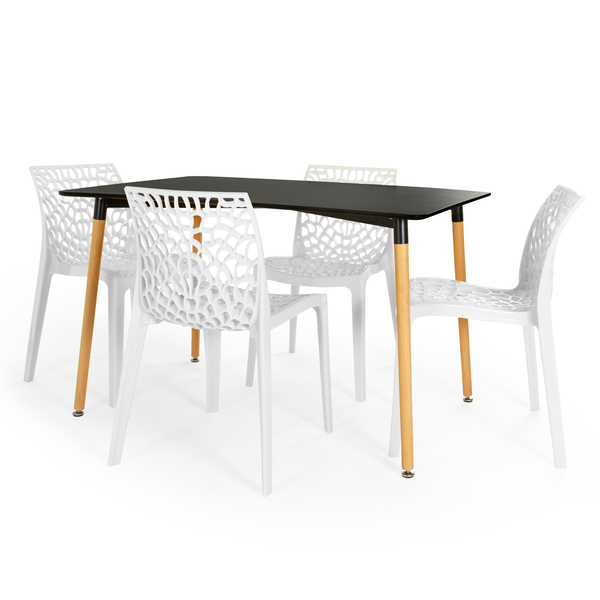 Conjunto Mesa de Jantar Retangular Eiffel Preta 120x80cm com 4 Cadeiras Gruvyer Branco