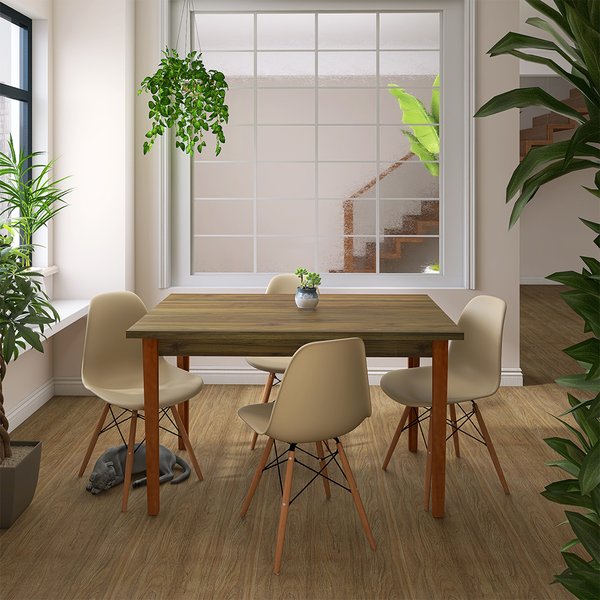 Conjunto Mesa de Jantar Retangular Luiza 135cm Natural com 4 Cadeiras Eames Eiffel