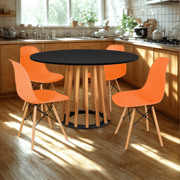 Conjunto Mesa de Jantar Talia Amadeirada Preta 120cm com 4 Cadeiras Eames Eiffel Laranja