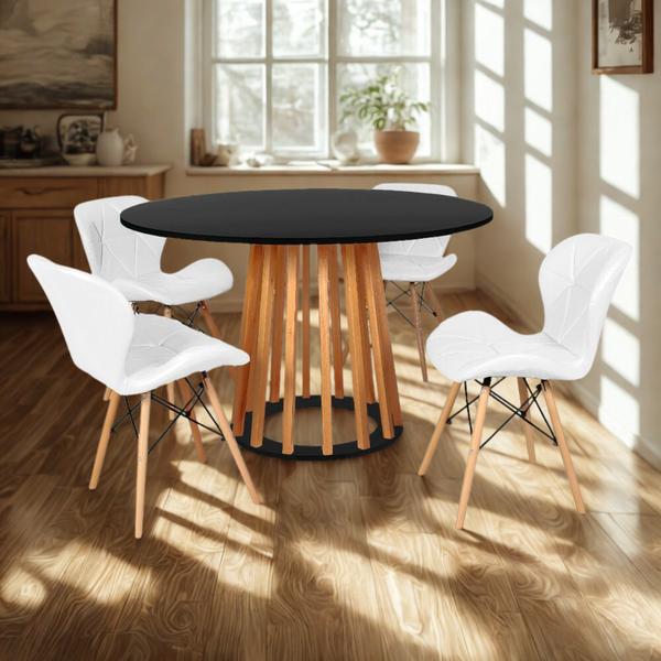 Mesa de Jantar Redonda Amadeirada Talia Preta 120cm com 4 Cadeiras Eiffel Slim
