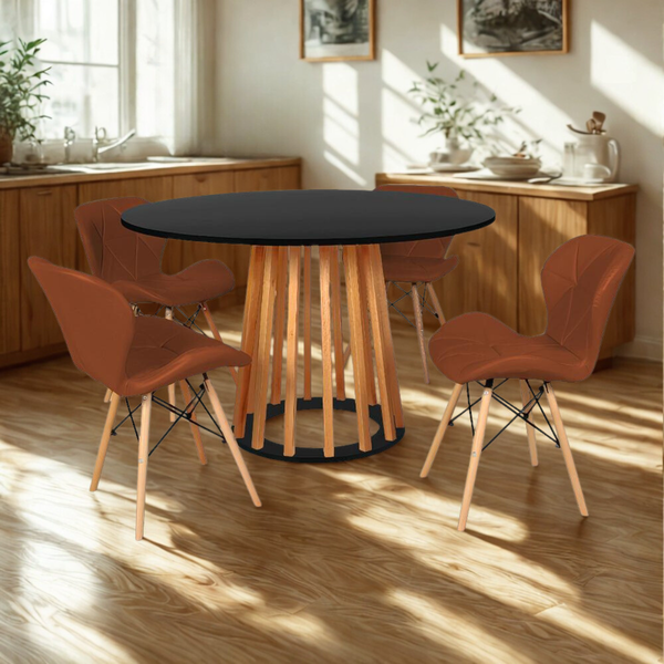 Mesa de Jantar Redonda Amadeirada Talia Preta 120cm com 4 Cadeiras Eiffel Slim