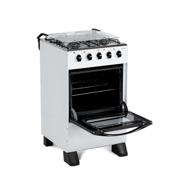 Este fogão possui quatro bocas a gás, proporcionando uma distribuição uniforme do calor durante o cozimento dos alimentos. As chamas potentes permitem um rápido aquecimento, economizando seu tempo na hora de cozinhar.