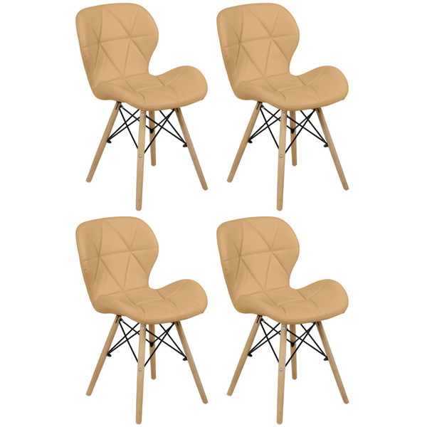 Kit 04 Cadeiras Charles Eames Eiffel Slim Wood Estofada Nude