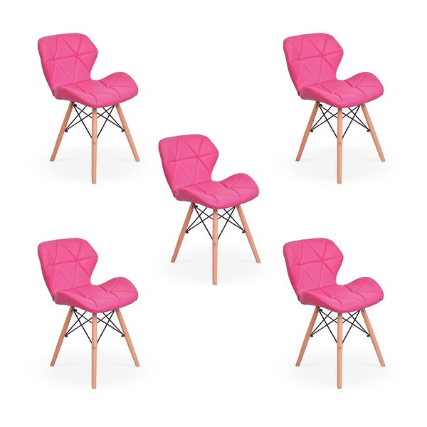 Kit 05 Cadeiras Charles Eames Eiffel Slim Wood Estofada