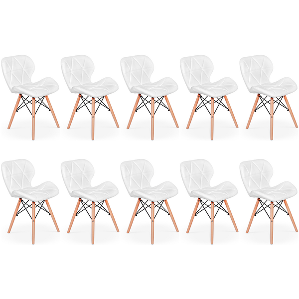 Kit 10 Cadeiras de Jantar Charles Eames Slim Wood Estofada Branco
