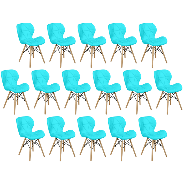 Kit 16 Cadeiras Charles Eames Eiffel Slim Wood Estofada