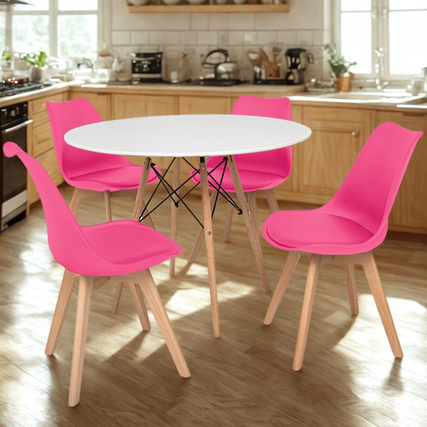 Mesa de Jantar Redonda Eiffel Branca 100cm com 4 Cadeiras Eiffel Leda