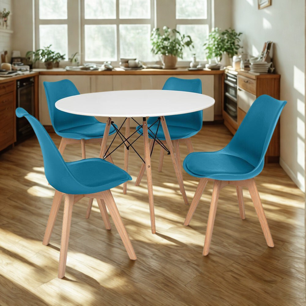 Kit Mesa Jantar Eiffel 120cm Branca + 04 Cadeiras Leda Turquesa
