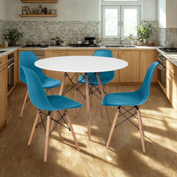 Conjunto Mesa de Jantar Eiffel 120cm Branca + 4 Cadeiras Charles Eames Turquesa