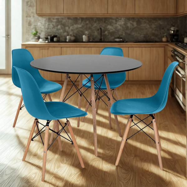 Conjunto Mesa de Jantar Eiffel 120cm Preta + 4 Cadeiras Charles Eames Turquesa