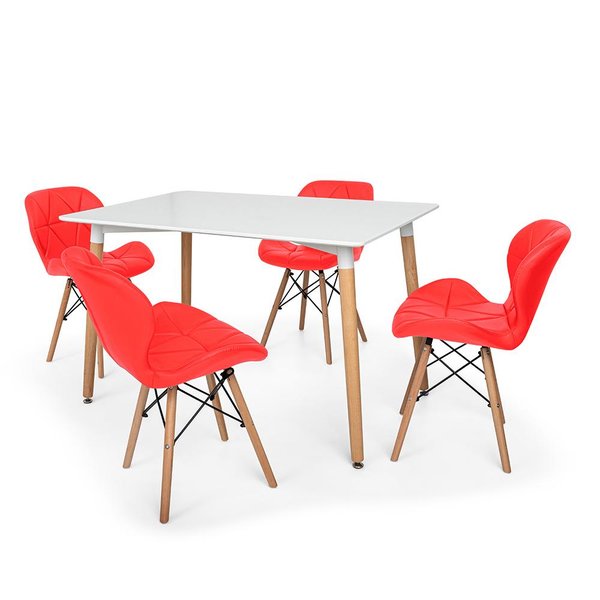 Kit Mesa Jantar Eiffel 120x80 Branca + 04 Cadeiras Slim Vermelha
