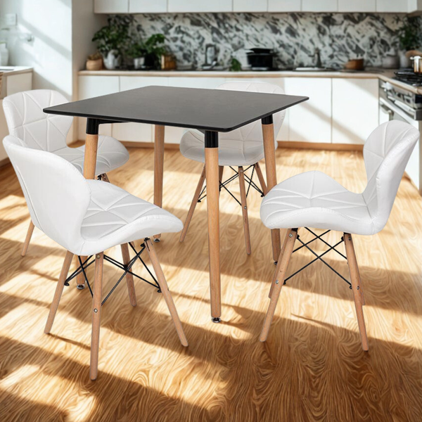 Mesa de Jantar Quadrada Eiffel Preta 80x80cm com 4 Cadeiras Eiffel Slim
