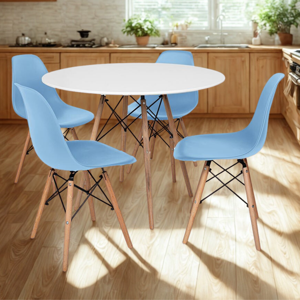 A Mesa Eiffel 90cm branca com 4 Cadeiras Charles Eames é perfeita para quem busca sofisticação e modernidade. Seu design contemporâneo adiciona charme e personalidade à sala de jantar, cozinha, home office ou quarto, elevando o estilo de qualquer cômodo.