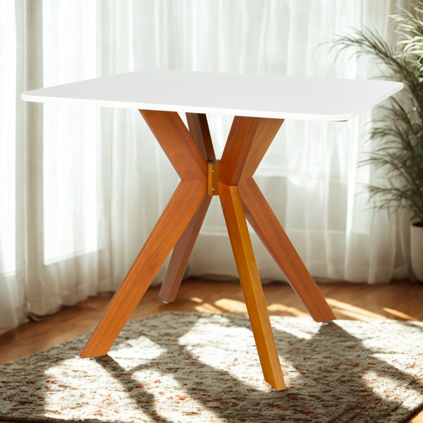Mesa de Jantar Quadrada Isa 90x90cm em MDF e Madeira Maciça Branco