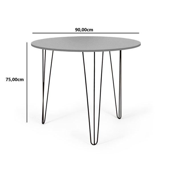 Mesa de Jantar Redonda 90cm Hairpin com 3 Pés