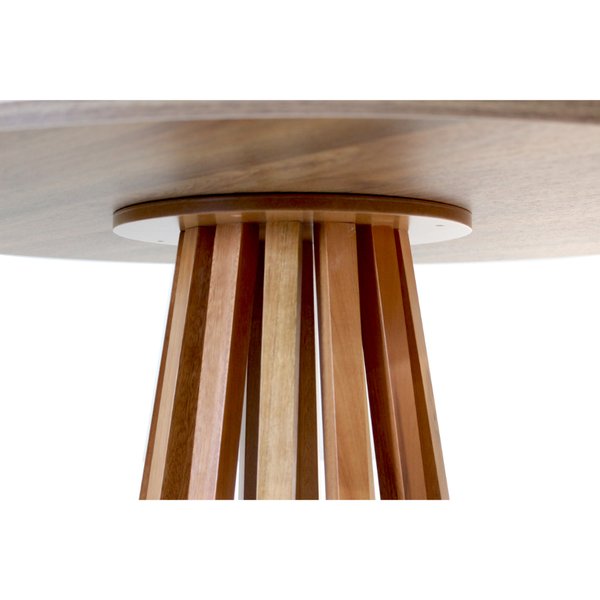 Com formato circular e 100cm de diâmetro, a Mesa Talia é perfeita para ambientes compactos ou integrados. Sua estrutura em madeira maciça garante durabilidade e resistência, enquanto o acabamento em verniz fosco valoriza os detalhes e confere um toque sofisticado.