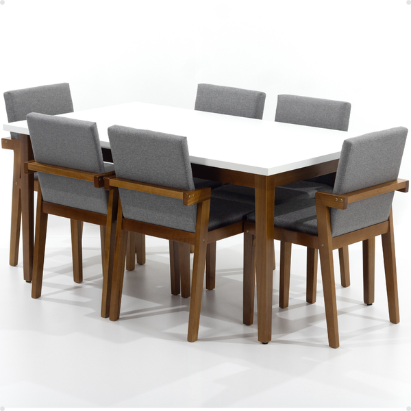 Mesa de Jantar Retangular Luiza 160cm Branca com 6 Cadeiras Estofadas Isabela