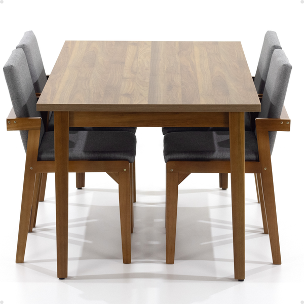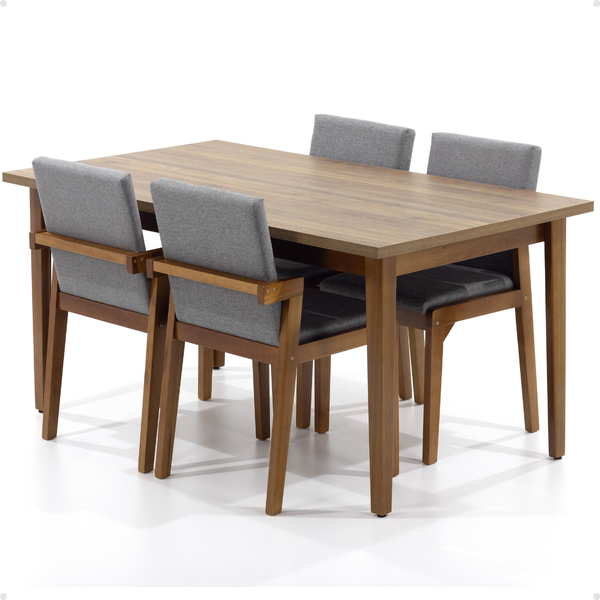 Mesa de Jantar Retangular Luiza 160cm Natural com 4 Cadeiras Estofadas Isabela