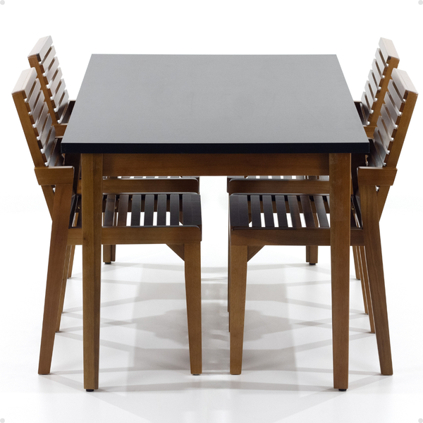 Mesa de Jantar Retangular Luiza 160cm Preta com 4 Cadeiras em Madeira Isabela Natural